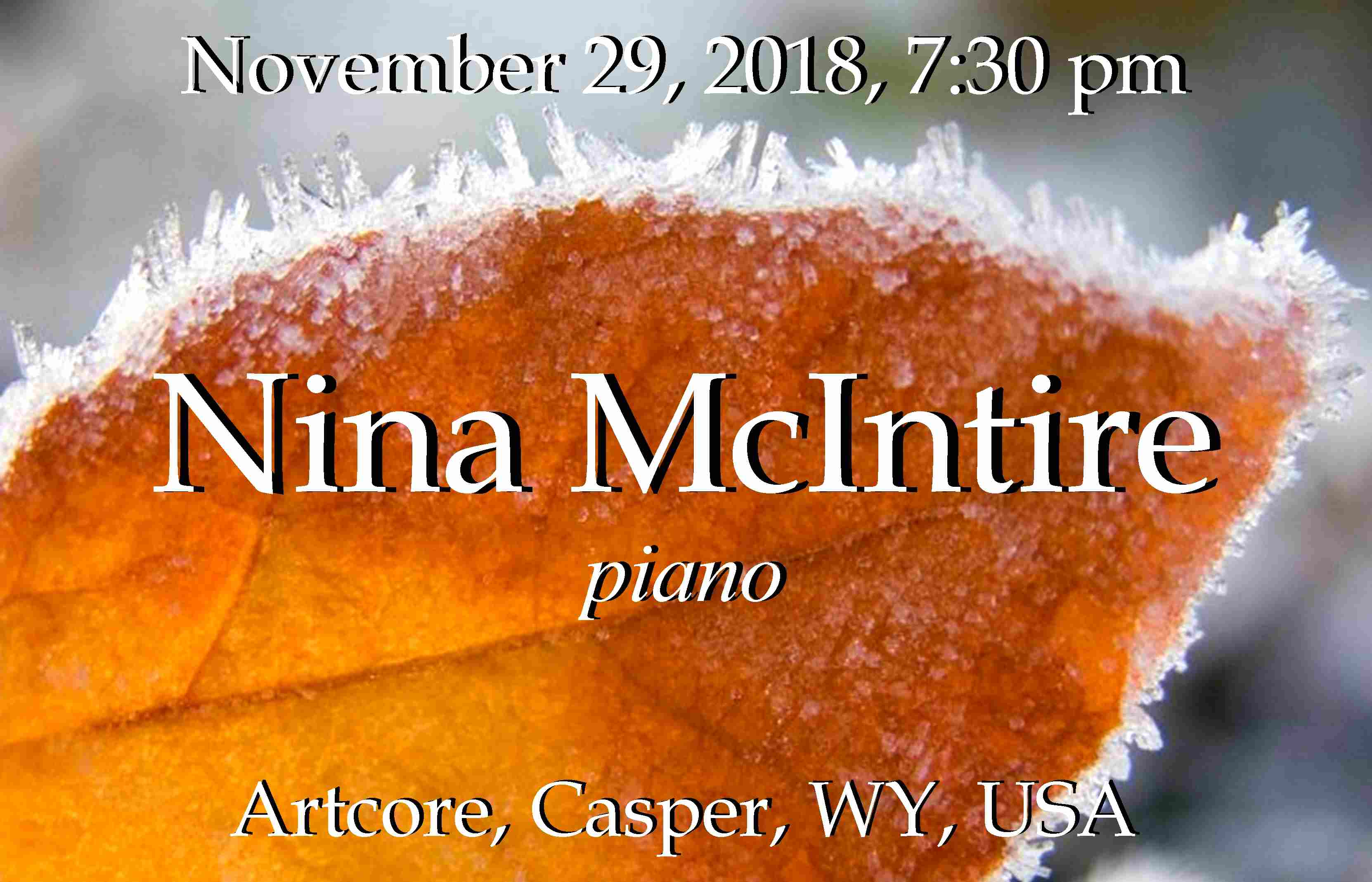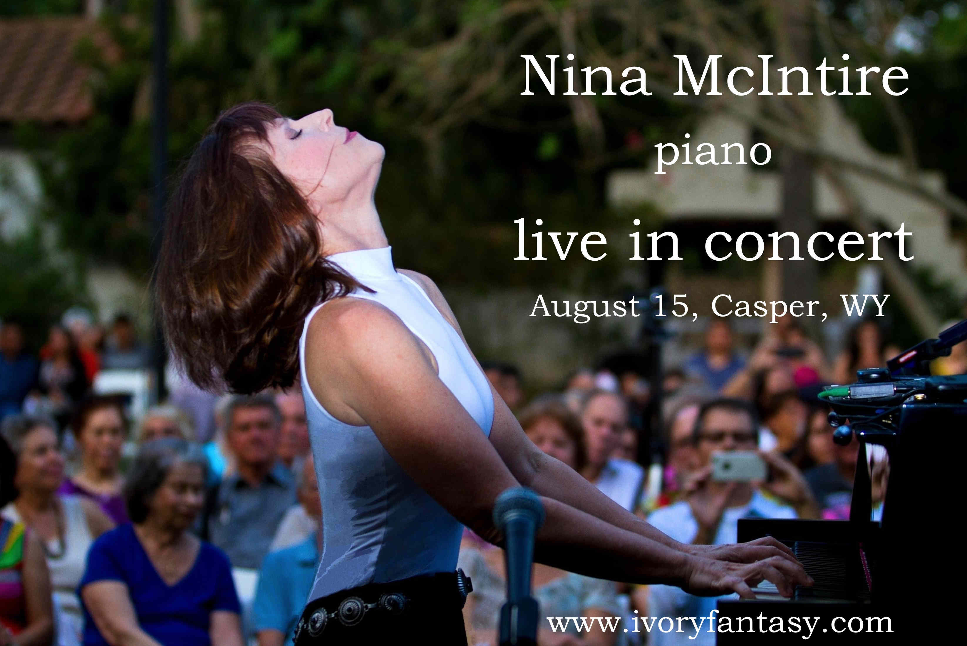 Casper, WY Concert July 26 ARTCORE, Nina McIntire, Fancy Piano, 7:30 p.m Nina's recital is in Durham Hall of the Aley Fine Arts Center.