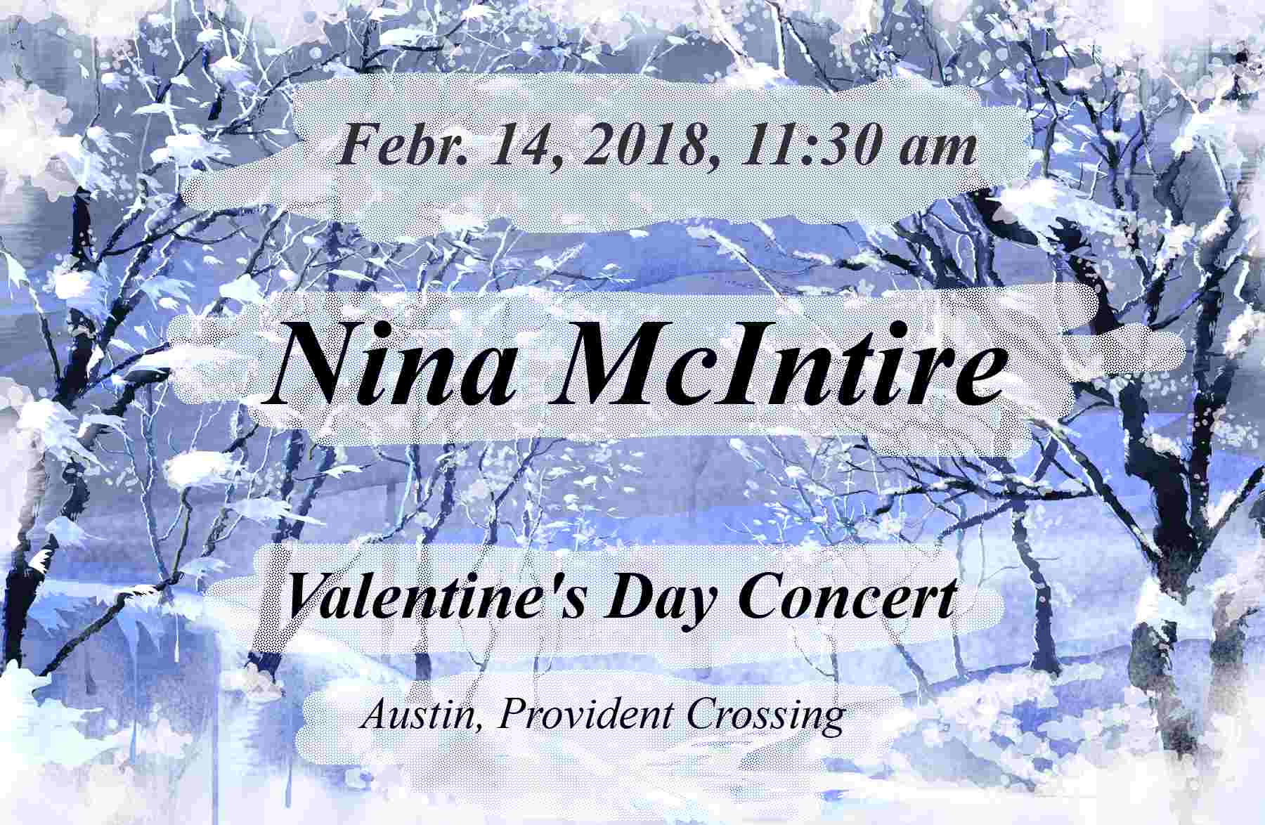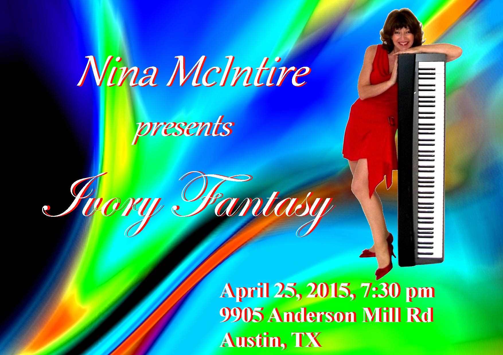 Austin, TX Concert April 25, 2015, Nina McIntire, Ivory Fantasy, 8:00 PM 9905 Anderson Mill Rd, Austin, TX, USA